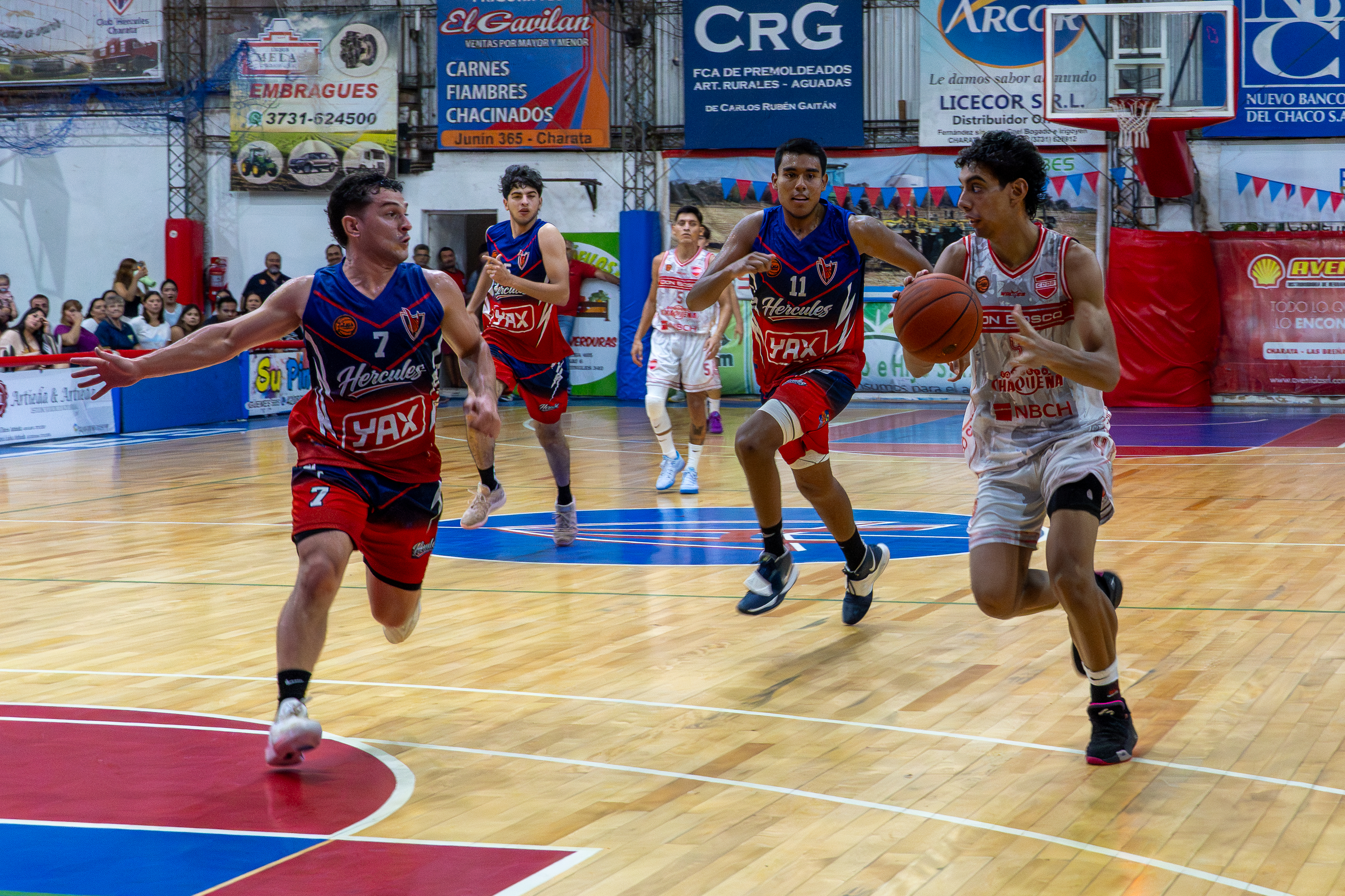 El primer cuarto fue punto a punto, con Gabriel Frencia abriendo el marcador para el local, aunque Don Bosco cerró arriba 15-14. En el segundo cuarto, Hércules mejoró su ofensiva con los triples de Ferraria y Frencia y, aprovechando la baja intensidad defensiva rival, se fue al descanso con ventaja de 10 puntos.