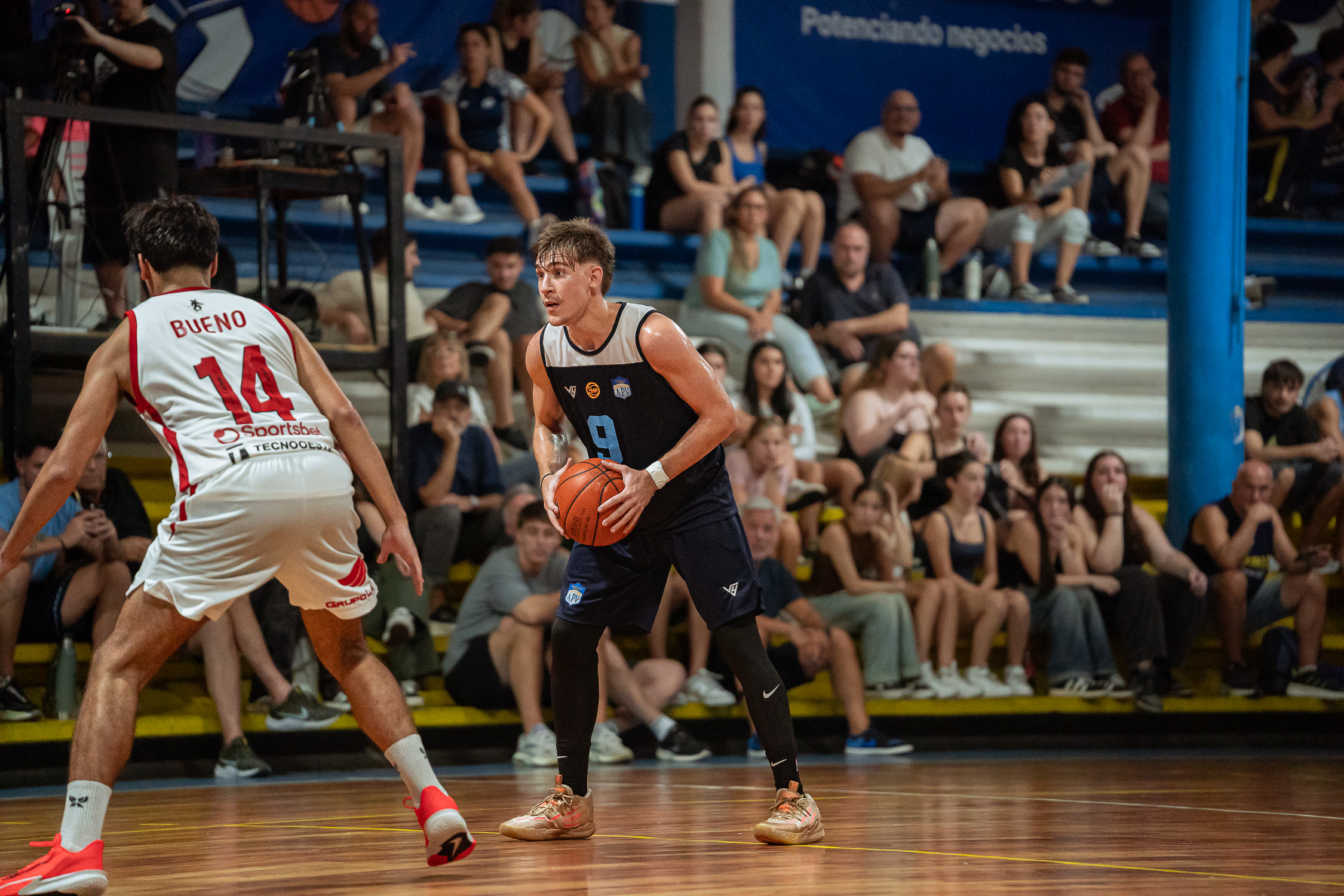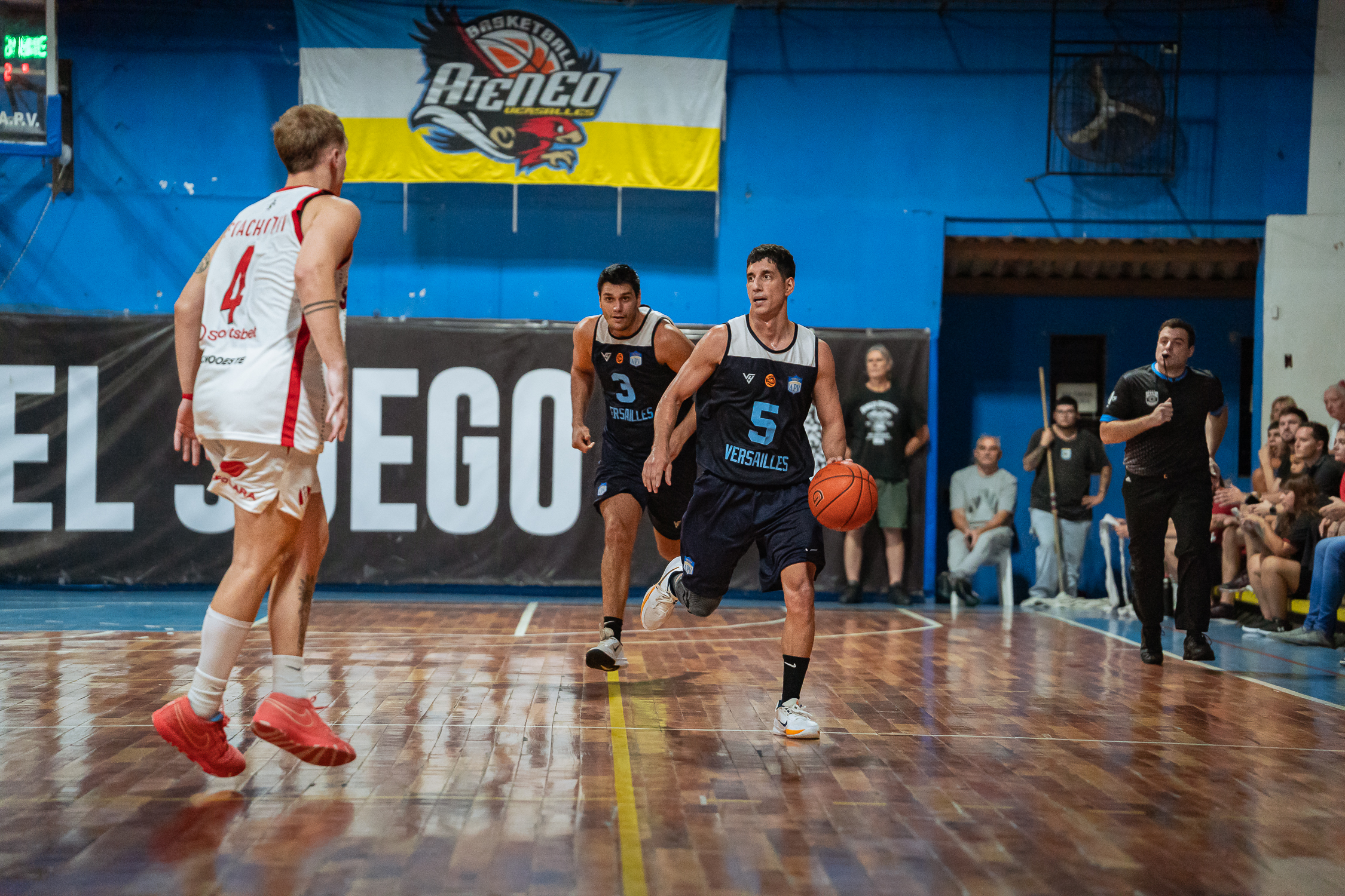 El primer período inició con la adrenalina alta para ambos equipos, jugando ambos a un juego vertical y de contragolpe. Sin embargo, el Rojo se adelantó en el marcador, llevándose un parcial de 23-16 sobre el conjunto local. Aguas fue el goleador del ganador con 19, mientras que Yaskulka anotó 13 en APV.