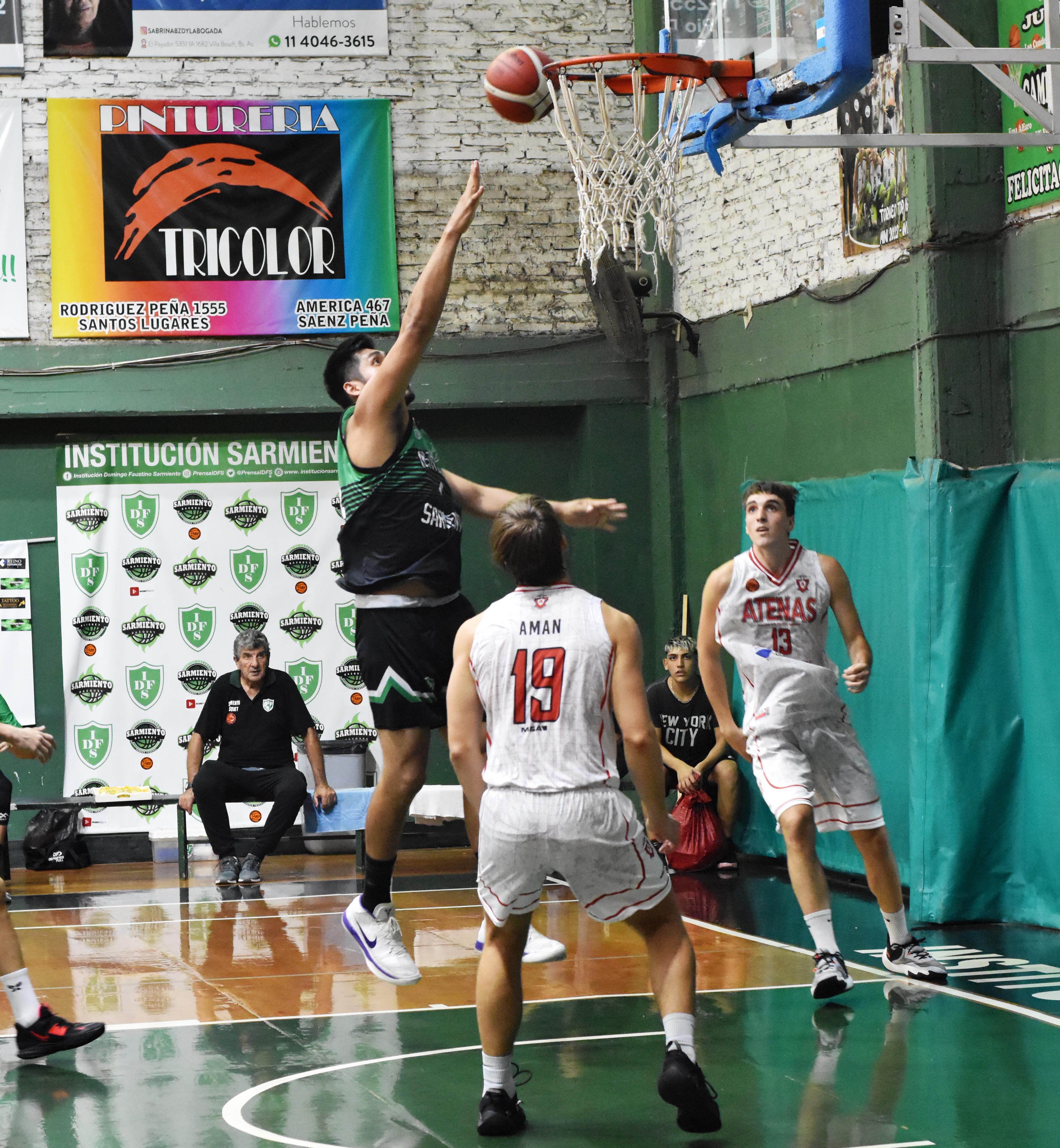 Sarmiento logró imponerse desde el salto inicial, con mucho movimiento de balón, pases extras para encontrar al mejor ubicado y un Raúl Salvatierra en estado de gracia que castigó a placer a la pintura de Atenas. Juani bello conducía y también castigaba con sus penetraciones, en tanto de que De Rogatis comenzaba a crecer, pero se empezaba a cargar de faltas. Así y todo, en los primeros 3 cuartos del juego, el Verde parecía tener controlado el partido. Sin embargo, el griego subió la defensa, supo encontrar en el bajón de intensidad de Sarmiento, los espacios para acercarse y fue Facundo Attadamo, quien con dos triples consecutivos y un doble, más el intratable Juan Pablo Pedemonte, lograron poner adelante a Atenas por dos, clavando un parcial de 19-5 con 2:30 por jugar. Y ahí apareció un jugadón de Juani Bello para que Delelis haga saltar a su marca y anote un doble clave. Y ahí apareció Ignacio García de Rogatis, quien desde un ángulo cerradísimo, previo amague, clavó el triple que encaminó la victoria Verde.
