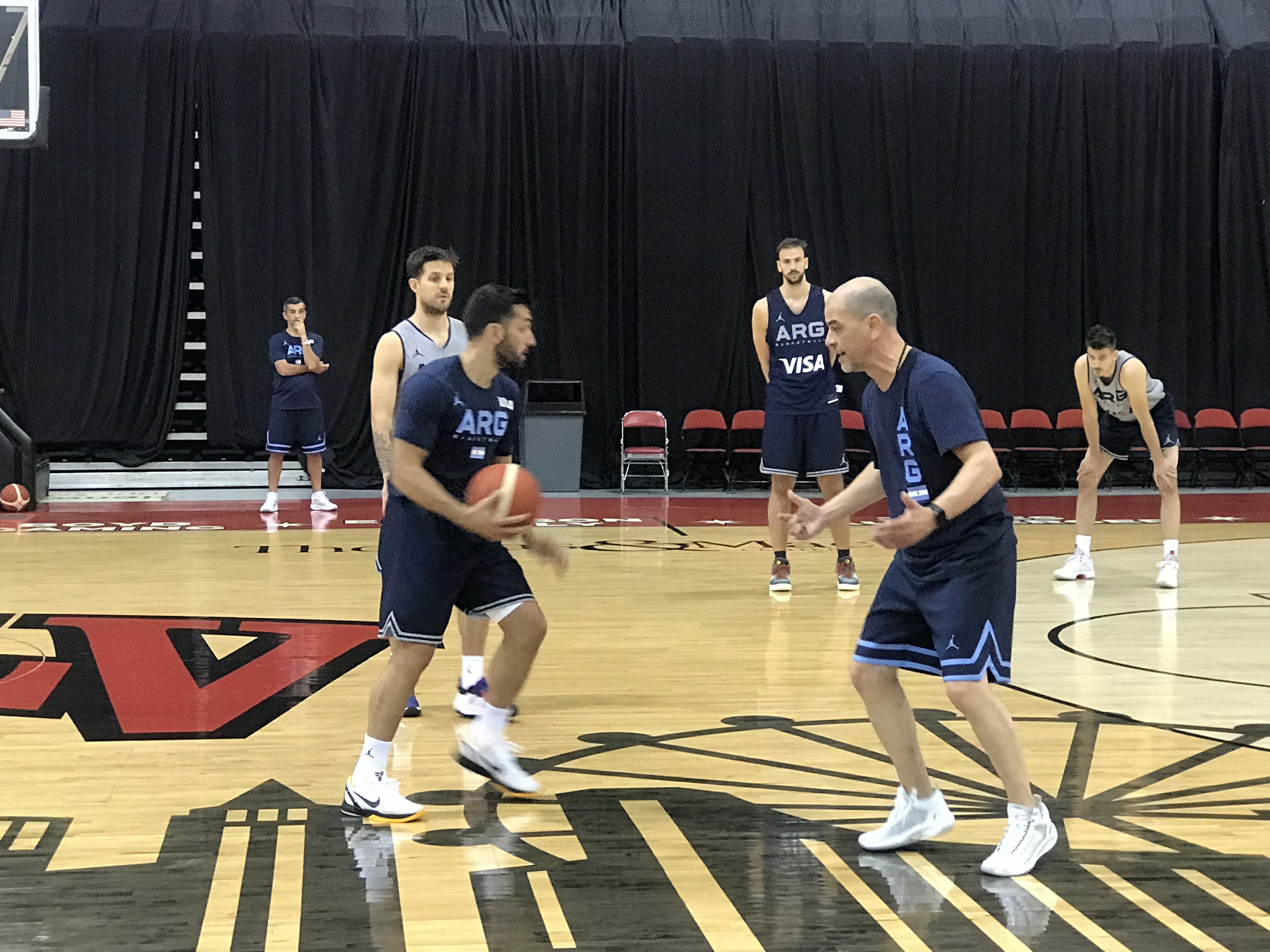 De lo contrario, como pasó en la buena parte de la práctica de hoy, que como estuvo muy cerca de la anterior, se le dio protagonismo al resto del staff, desde los preparadores físicos (Manuel Alvarez y Marcelo López) hasta los asistentes técnicos. Se armaron estaciones de 18 minutos donde se mezcla con acondicionamiento físico y técnica individual. Todo con exigencia y hasta buscando sacar la competitividad de los jugadores. Lo mismo que pasa generalmente en el final de cada práctica táctica, cuando se juega un cuarto entero, con reglas ofensivas y defensivas para cada uno. Cada equipo lo dirige un ayudante y se juega a cara de perro, con tiempo y tanteador.